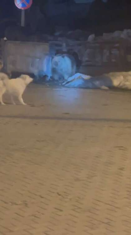 Kış uykusundan uyandı, çöpleri böyle devirdi