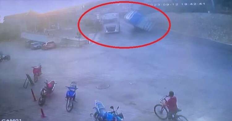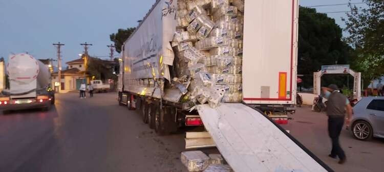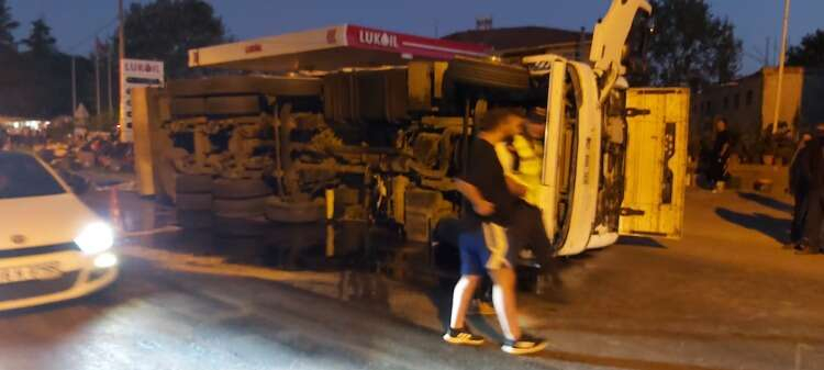 Bursa’nın İznik ilçesinde virajı alamayan tır önce araçlara çarptı sonra devrildi