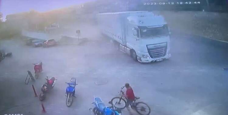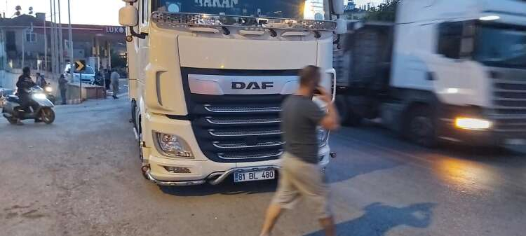 Kontrolden çıkan tır önce araçlara çarptı sonra devrildi