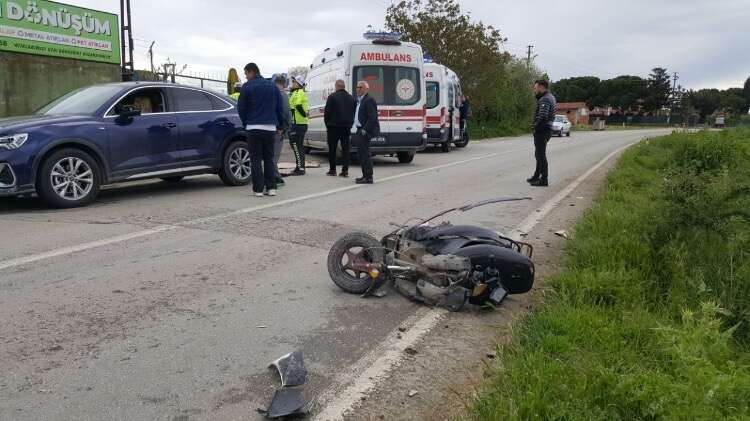 Köpeklerin saldırdığı motosikletli otomobille çarpıştı
