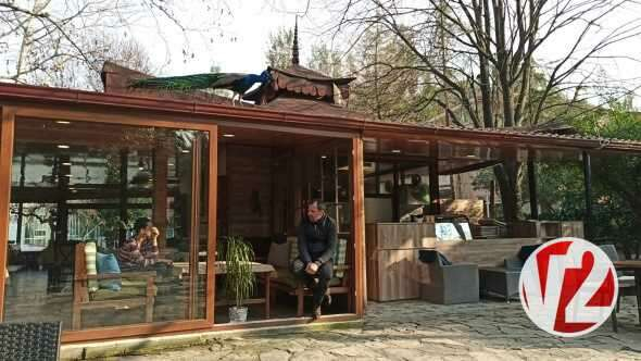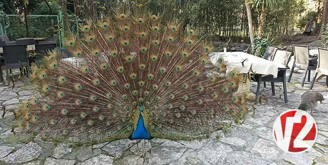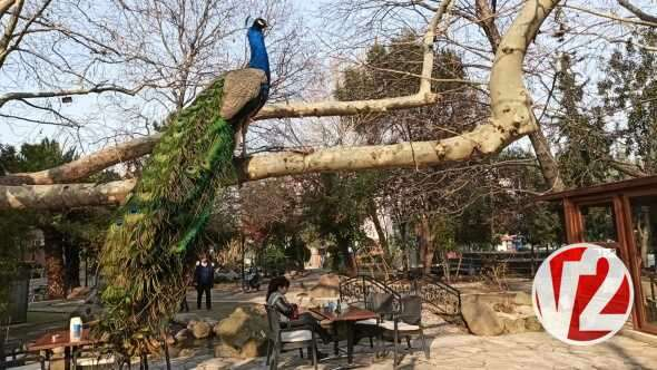 Manisa`nın Yunusemre ilçesi Güzelyurt Mahallesindeki Barış Alanı Öncü Sitesi içerisinde kafe işleten Okan Evren, 15 sene önce iş yerine renk olsun diye bir erkek tavus kuşu aldı.