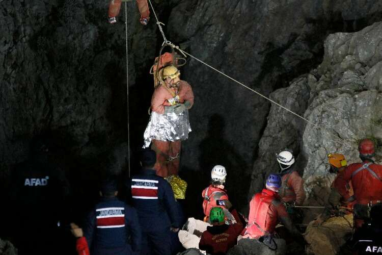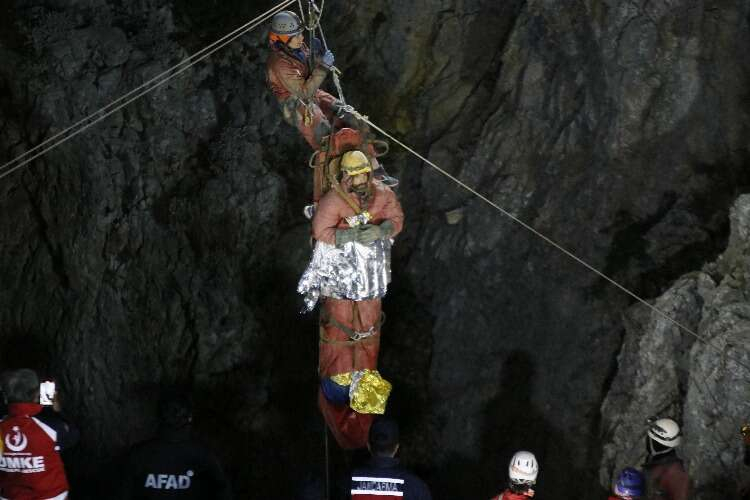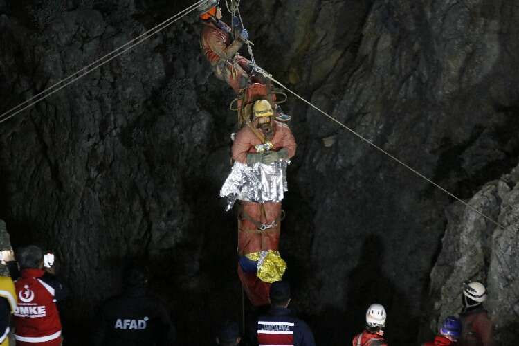 Mersin'de, Morca Mağarası'nda mide kanaması geçiren ve doktorların onay vermesiyle...