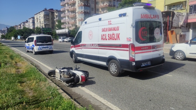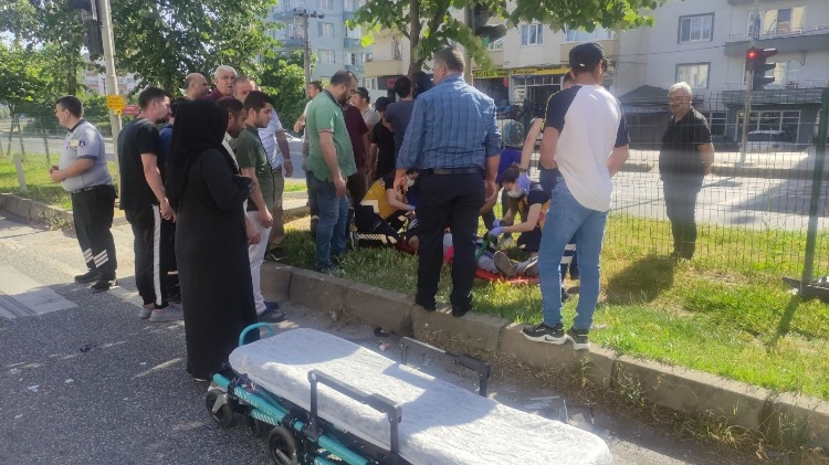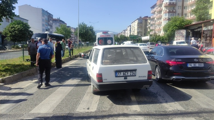 Bursa’nın Orhangazi İlçesinde meydana gelen trafik kazasında yaya geçidinden karşıya geçmek isteyen bir motosiklete otomobil çarptı.
