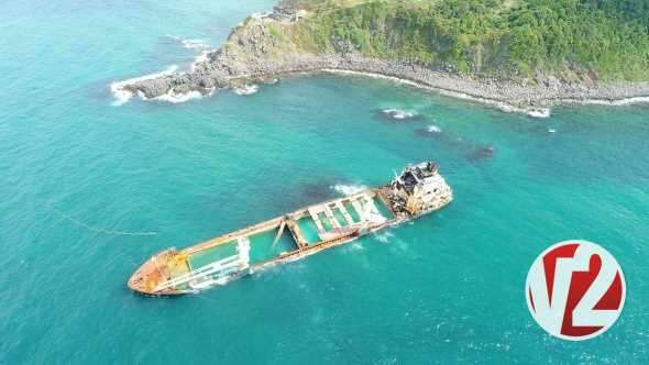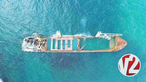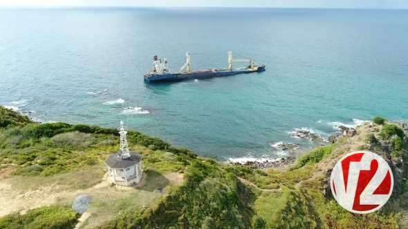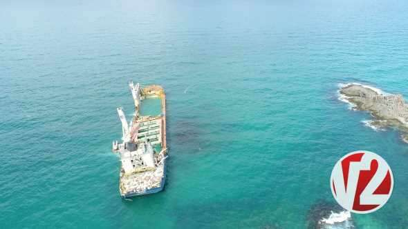 2018 Aralık ayından beri karaya oturduğu yerde duran gemi havadan görüntülendi.