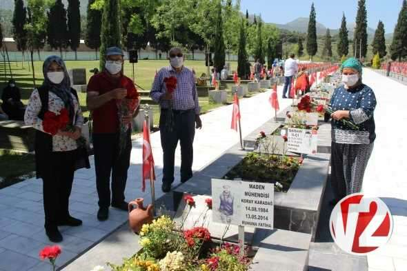 Törene katılan protokol, şehit madencilerin kabirlerine karanfil bırakırken, Manisa Valisi Ahmet Deniz ile AK Parti Manisa Milletvekili Mehmet Ali Özkan şehit yakınlarına başsağlığı diledi.