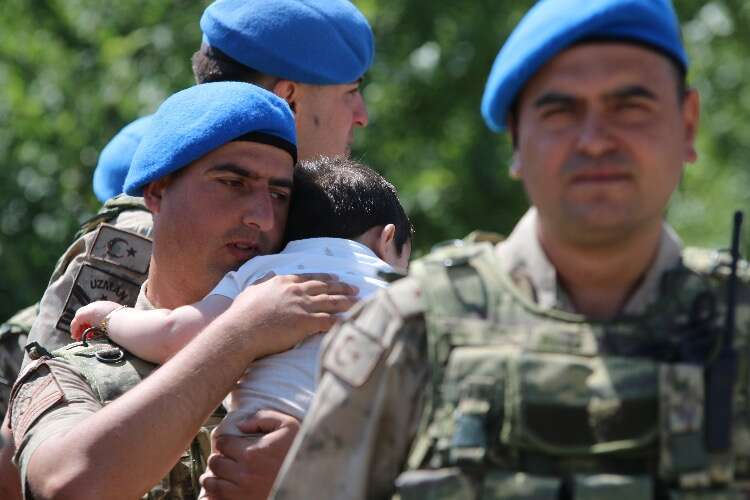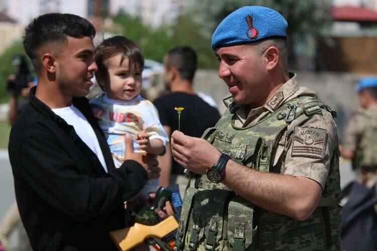 Suriye Görev Gücü’nde yer alacak komandolar bugün Elazığ'dan dualar eşliğinde Suriye’ye uğurlandı. Askerlerin, uğurlama törenine katılan aileleriyle vedalaşması sırasında yaşadıkları duygu dolu anlar fotoğraf karelerine yansıdı.