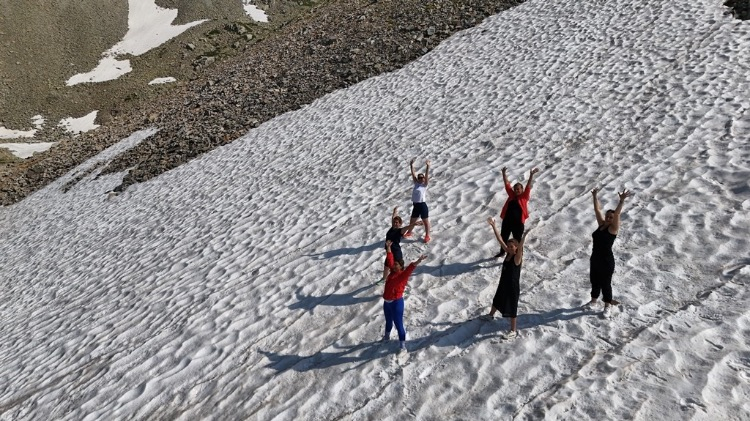 Türkiye'nin neredeyse tamamı sıcaklardan kavrulurken Artvinli kadınlar Türkiye'nin ilk ve tek biyosfer rezerv alanı olan Camili (Macahel) bölgesinde 3000 metrede kar üstünde yoga yaptılar.