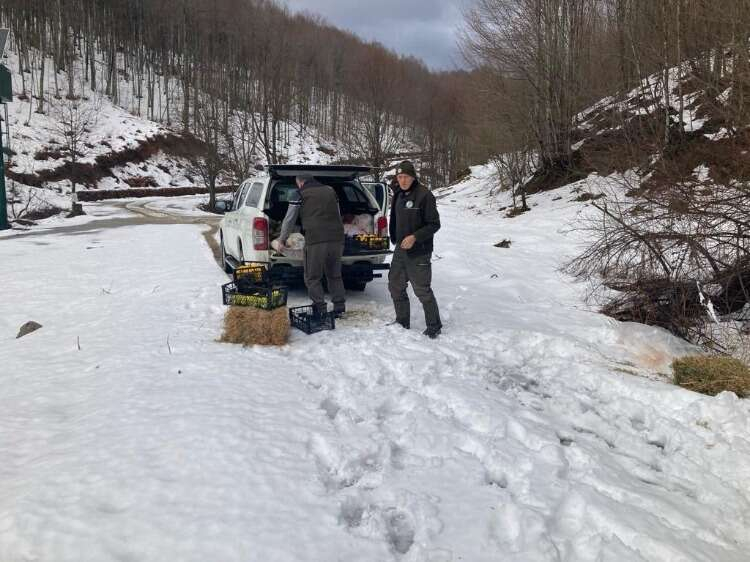 Tarım Orman Bakanlığı Doğa Koruma ve Milli Parklar Genel Müdürlüğü 2.Bölge Müdürlüğüne bağlı Bursa Şube Müdürlüğü Av Koruma-Kontrol ekipleri, yoğun kar yağışı ve zor kış şartlarında yem bulmakta güçlük çeken yaban hayvanları için doğaya yiyecek bıraktı.