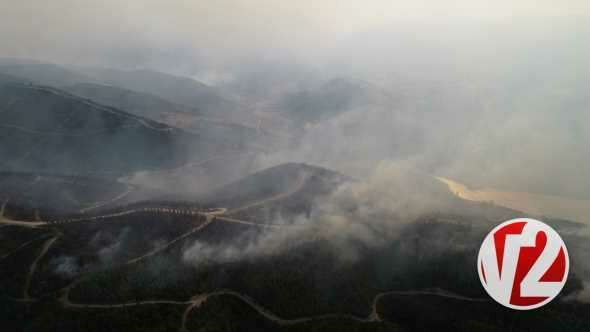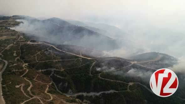 Havanın kararması üzerine havadan müdahaleye ara verildi. Bugün hala kontrol altına alınamayan yangında 200 hektarın üzerinde ormanlık alanın zarar gördüğü bildirildi.