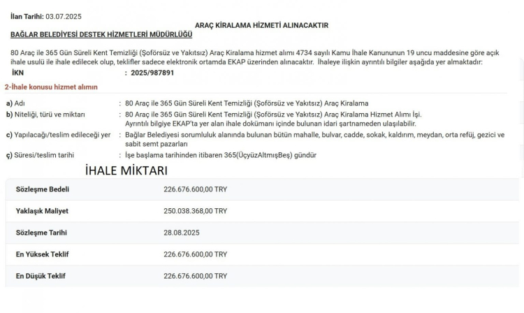 Esnafın temizlik konusundaki şikâyetleri üzerine başlatılan çalışma sonrası, Bağlar Belediyesi ile AK Parti teşkilatı arasında karşılıklı açıklamalar yapıldı. Ancak olayın perde arkasında milyonluk ihaleler, araç eksikliği ve görevden alma iddiaları dikkat çekiyor. Bağlar Belediyesi’nde temizlik hizmetlerine ilişkin ihaleler de tartışma konusu oldu. 30 Mayıs’ta yapılan 4 aylık temizlik ihalesi 53 milyon TL’ye gerçekleştirilirken, Ağustos ayında yapılan 1 yıllık yeni ihalenin bedeli 226 milyon TL oldu.