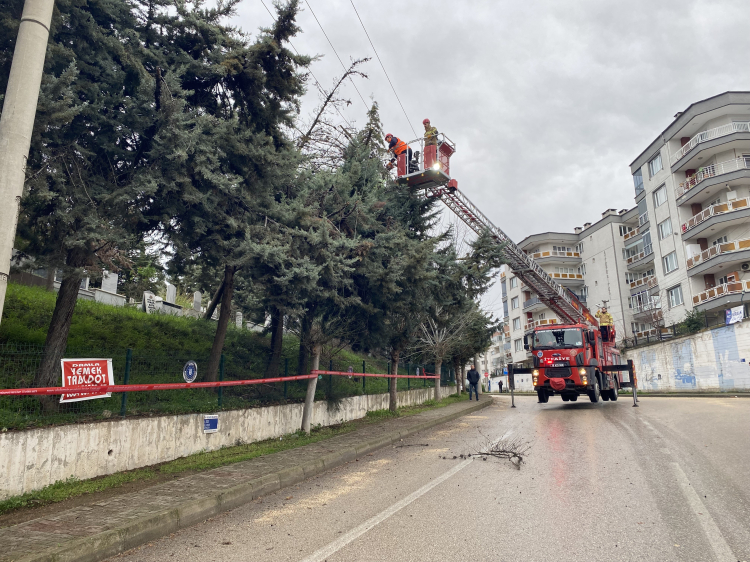 Olay, Mudanya ilçesi Güzelyalı Eğitim Mahallesi Eski Mezarlık mevkiinde meydana geldi. Şiddetli rüzgarın etkisiyle devrilen ağaç, bölgedeki elektrik hatlarına yaslandı. Vatandaşlar durumun bildirilmesi üzerine olay yerine Uludağ Elektrik ekipleri ile Mudanya İtfaiyesi sevk edildi.