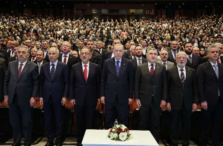 Cumhurbaşkanı Erdoğan, “Bizi parti, ittifak ve hükümet olarak rakiplerimizden ayıran temel vasfımız ülkeye ve millete hizmet aşkıyla viran olmamızdır. Hangi görüşten, kökenden, gelir gurubundan olursa olsun milletimizin derdi bizim derdimiz, bizim meselemizdir. Sadece bize oy verenlerin değil 85 milyonun tamamının sorumluluğunu yüreğimizde hissediyoruz. Aziz milletimizin teveccühü ile geldiğimiz tüm makamları siyasi sıçrama tahtası olarak değil ülkemize hizmet etme vasıtası olarak gördük. 40 yılı aşan siyasi hayatımızın hiçbir safhasında şov peşinde koşmadık, millete karşı görevlerimizi en güzel şekilde ifa etmeye çalıştık. İnsanımızın da bizim bu gayretlerimizi görmüş olması işte bizi 20 yıldır bu makamda tutmasını sağlamıştır. Benim milletim bizim çabalarımızı takdir etti, samimiyetimize inandı, bize ve hükümetimize inandı ve itimat etti. Bu güvenin bir neticesi olarak son 21 yılda girdiğimiz 17 seçimin hepsinde milletimiz bizden desteğini, duasını asla esirgemedi. Şimdi ne kaldı? Şurada 3,5 ay kaldı. 3,5 ay gece gündüz mütevazi olarak kapı kapı dolaşmak suretiyle ana kademe, kadın kolları, gençlik kolları olarak yol yürümeye var mıyız? Yeniden İstanbul diyor muyuz? Milletimizin tüm kesimleri ile aramızda kurulan bu gönül bağını siyasetteki en büyük sermayemiz olarak görüyoruz. Önümüzdeki dönemde karşılıklı güvene dayanan bu ilişkiyi inşallah daha da güçlendireceğiz. Başkaları gibi meydanlarda bol keseden atıp tutup göreve gelince bunları unutanlardan, verdiği sözlerin üzerine beton dökenlerden olmayacağız. Yerel yönetimle merkezi hükümet arasındaki vizyon, ufak, ideal ve inanç birlikteliğinin önemini hepimiz çok iyi biliyoruz. Vatandaşa hizmet etmek yerine farklı hayallere kapılan fırsat buldukça belediyeye uğrayan zihni ve kalbi sürekli başka yerlerde olan idarecilerin şehirlerini çok kısa sürede nasıl geriye götürdüklerini 2019 yılında el değiştiren belediyelerde çok acı bir şekilde hep beraber tecrübe ettik. Özellikle Fatih'in emaneti bu güzel şehrin son 5 yılının temel atmama törenleri ile engelleniyoruz yalanlarıyla nasıl heba edildiğinin, nasıl boşa harcandığının hepimiz şahidiyiz. Bunun için 31 Mart seçimleri çok önemli. İstanbul'un hizmet ve eser hasretinin dinmesi için 31 Mart kritik bir eşik. İnşallah 31 Mart'ta İstanbul'un fetret devrini kapatacak irtifa kaybına son verecek, hak ettiği hizmetlerle yeniden buluşmasını sağlayacağız” ifadelerini kullandı.