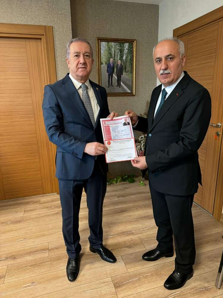 Dosyasını Genel Başkan Yardımcısı Sadir Durmaz’a teslim eden Aydın, ziyaret ettiği MHP Genel Başkanı Devlet Bahçeli’nin de hayır duasını aldı.