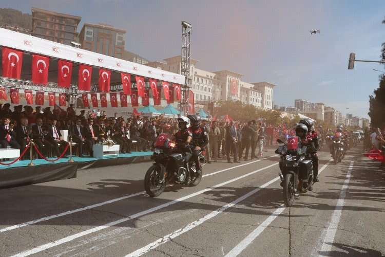 29 Ekim Cumhuriyet Bayramı ve Türkiye Cumhuriyeti'nin kuruluşunun 100. yıl dönümü kutlamaları Kahramanmaraş’ta 7’den 70’e yüzlerce kişinin katıldığı büyük bir coşku ile kutlandı. Her yıl Trabzon Bulvarı'nda düzenlenen etkinlikler 6 Şubat tarihinde yaşanan depremlerden dolayı bu yıl Prof. Dr. Necmettin Erbakan Bulvarı'nda gerçekleştirildi. Kahramanmaraş Valisi Mükerrem Ünlüer, Kahramanmaraş Büyükşehir Belediyesi Başkanı Hayrettin Güngör ve Kahramanmaraş Garnizon Komutanı Tuğgeneral Emin Mehmet Terzioğlu askeri araç üzerinde halkı selamladı.
