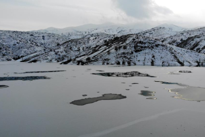 Soğuk hava nedeniyle Erzincan'da, Göyne Sulama Barajı'nın yüzeyi buz tuttu.