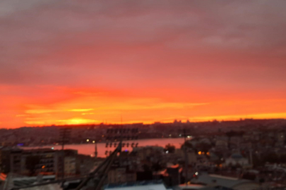 İstanbul’da gün batımında gökyüzü ve caminin kartpostallık manzarası görenleri hayran bıraktı. Kızıla bürünen güneşin denizin üstünde battığı anlar kartpostallık görüntüler oluşturdu. Turistler o anları görüntülemek için telefonlarına sarıldı.