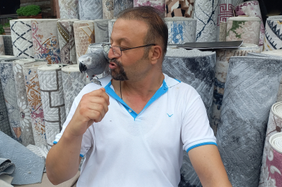 Edirne’de yaşayan güvenlik görevlisi Mustafa Turgay Özçetin, “Şampiyon Tarçın” adını verdiği papağanı ile sokaklarda geziyor.