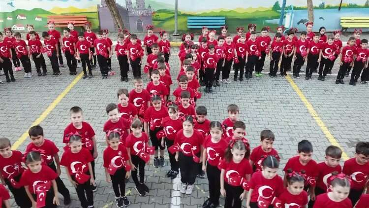 Pendik’te Öğretmen İbrahim Öztürk İlkokulu öğrencileri, Cumhuriyet’in 100’üncü yılına özel koreografi hazırladı. Minik öğrencilerin ‘100’ sayısı ve ay yıldız simgesi oluşturdukları koreografi havadan görüntülendi.