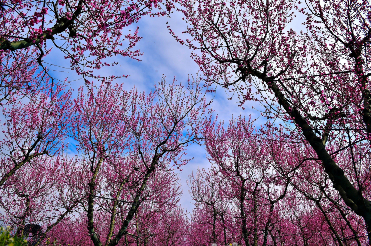 Bursa'nın İznik ilçesinde ilkbaharın gelişiyle birlikte meyve bahçeleri adeta renk cümbüşüne dönüştü. Özellikle şeftali ağaçlarının açan pembe-beyaz çiçekleri, doğaseverlere görsel bir şölen sunarken bölgeyi ziyaret edenleri kendine hayran bırakıyor.