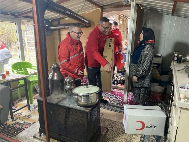 Kızılay, köylerde kalan depremzedelere kışlık yardım yaptı