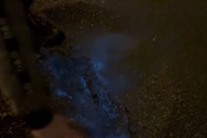 Bursa’nın Mudanya ilçesinde, tek hücreli organizmaların aşırı derecede üremelerinden sonra toplu halde su yüzüne çıkmalarıyla yaşanan ’alg patlaması’ deniz suyunu gece yarısı mavi ışıklı hale getirdi. Denizdeki ışığı görenler büyük şaşkınlık yaşadılar.