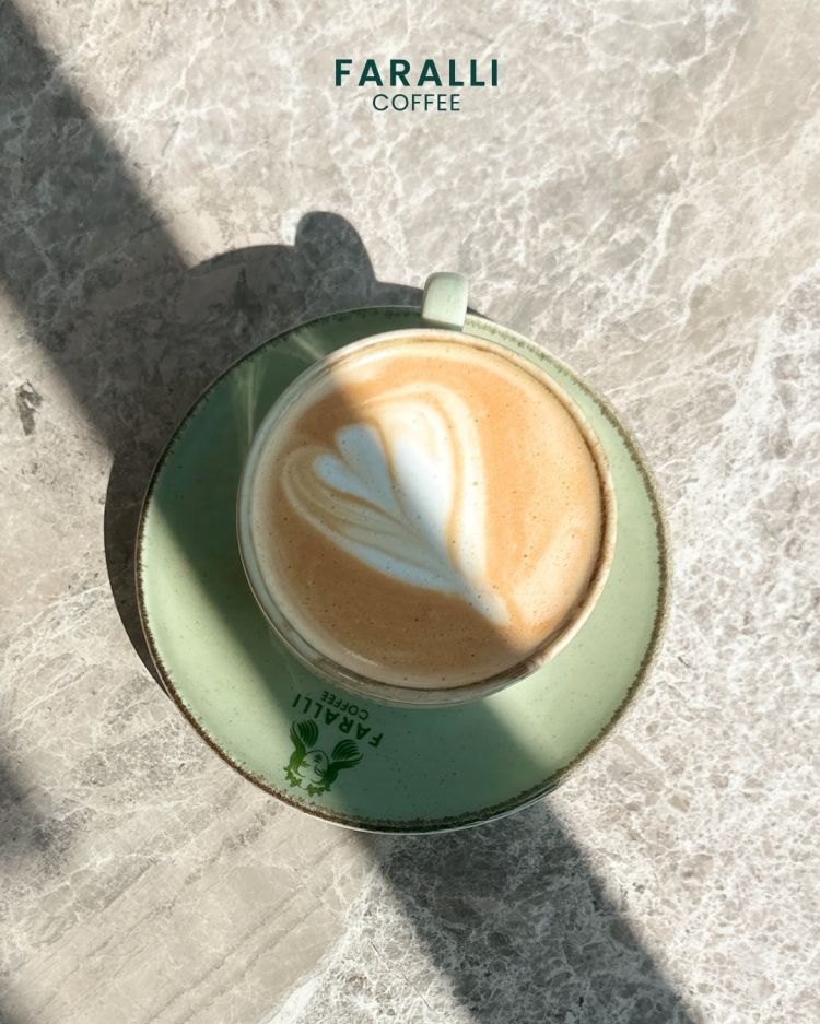 Faralli Coffee’nin iç mimarisi, iç mimar Ela Cihan Güller tarafından modern çizgilerle tasarlandı. Markanın logosunda yer alan antik Roma’nın ‘kafein tanrıçası’ figürü, kahvenin tarihine ve markanın sanatsal duruşuna gönderme yapıyor.