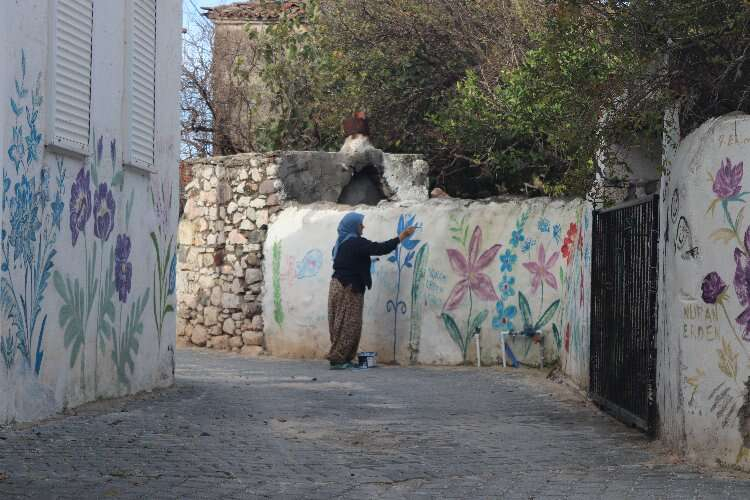 İzmir’in Çeşme ilçesinin tek Türkmen köyü olan Germiyan köyünde yaşayan 61 yaşındaki Nuran Erden, duvarlara ve elektrik direklerine çizdiği resimlerle köyün sokaklarına renk verdi. 27 yaşında kazandığı Trakya Üniversitesi Halı Dokumacılığı bölümünden mezun olan Erden’in resme olan sevgisi, sokaklara taştı.