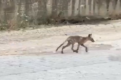 Görüntülerde yiyecek arayışına giren tilkilerin sokaklar yürüyüşleri görünüyor.
