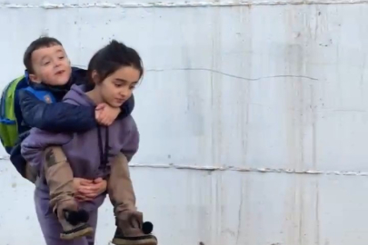 Selin getirdiği çamur nedeniyle kardeşini sırtında okula götürdü