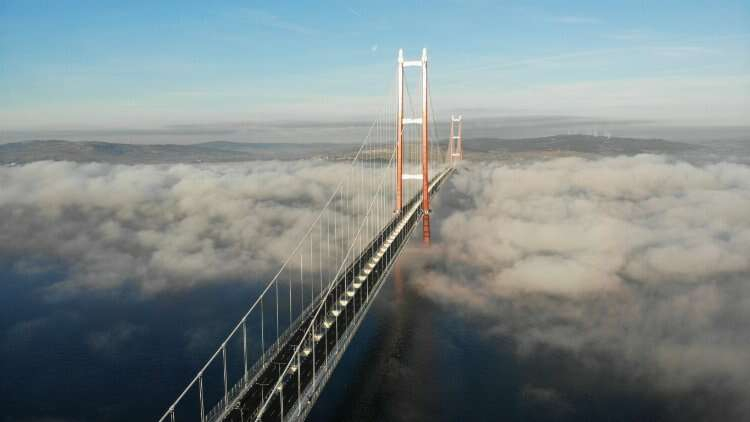 Çanakkale Boğazı yoğun sis sebebiyle transit gemi geçişlerine kapatıldı. 2023 metre ile dünyanın en uzun orta açıklığa sahip asma köprüsü olan 1915 Çanakkale Köprüsü’nün sis bulutu altındaki hali ise dron ile görüntülendi. Sis bulutu geçişi sırasında 1915 Çanakkale Köprüsü görüntüsüyle hayran bıraktı.