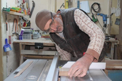 38 yıl öğretmenlik yapan ve emekli olan eğitimci Turan Başağa (68), emekli olduktan sonra evini marangoz atölyesine çevirdi.