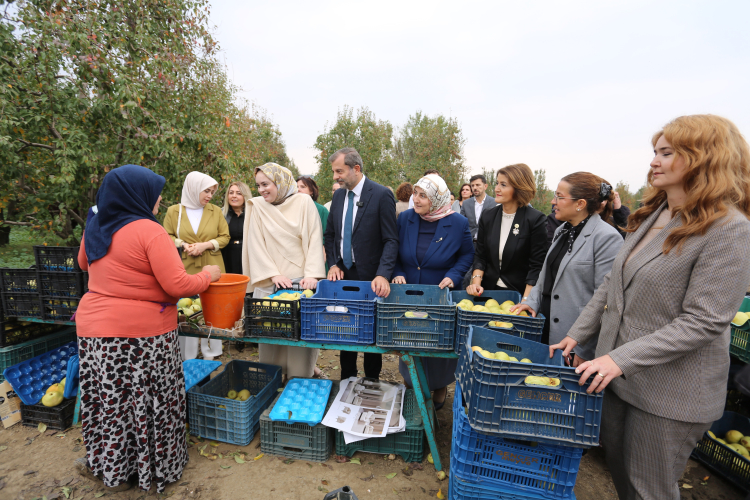 Topuklu ayakkabılı iş kadınlarıyla şalvarlı köylü kadınları aynı tarlada aynı hedef için buluştu. Ağırlığı bir kilogramı bulan Türkiye’nin en büyük deveci armudu üreticisi olan Bursa’nın Gürsu ilçesinde bu yılki hasat anlamlı bir mesajla sonlandı