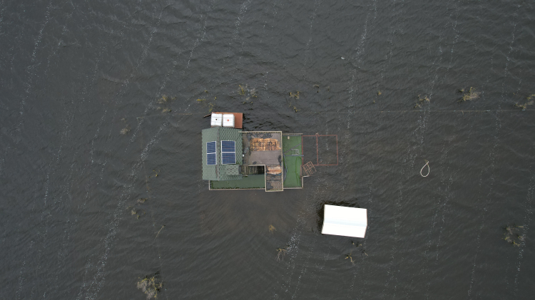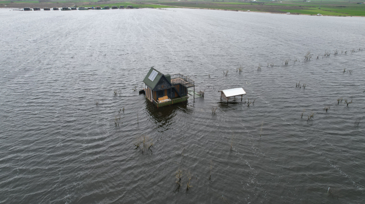 Bursa'da Ulubat Gölü'nün taşmasıyla göle komşu Akçalar Mahallesi'nde onlarca tiny house ve hobi evi sular altında kaldı. Göl havzasının ne denli geniş bir alan yayıldığı havadan gözler önüne serildi.