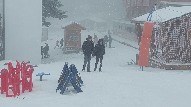 Pistlerdeki kar kalınlığı kayak yapmaya elverişli hale gelirken, günübirlikçiler kızak kiralayıp keyif yaptı. Telesiyejle büyük zirveye çıkmak isteyenler ise uzun kuyruklar oluşturdular.