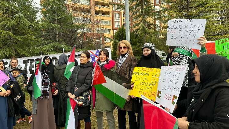 Yeniden Refah Partisi Ankara İl Başkanlığı, Tuğçe Kazaz’ın ABD Büyükelçiliği önünde Filistin’e destek eylemine katıldı. Düzenlenen eylemde Yeniden Refah Partisi Ankara İl Başkanı Mustafa Yanılmaz, Ankara Filistin Dayanışma Platformu, vatandaşlar ve bazı sivil toplum kuruluşları İsrail’in Gazze’ye yönelik saldırılarını protesto etti. Yeniden Refah Partisi Ankara İl Başkanı Mustafa Yanılmaz yaptığı basın açıklamasında, “Derhal bu saldırıların ve bu katliamın durdurulması gerekir. Her ne şekilde durdurulacaksa önce durdurulması gerekir” dedi.