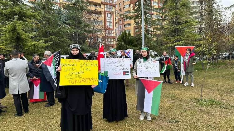 Yeniden Refah Partisi Ankara İl Başkanlığı İsrail'in Gazze'ye yönelik saldırılarını ABD Büyükelçiliği önünde protesto etti.