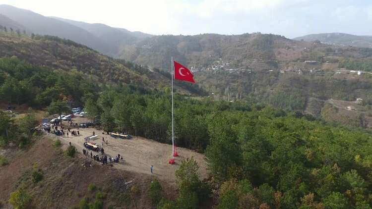 Köylümüzün büyük destekleri oldu, büyüğünden küçüğüne herkesin bir katkısı oldu. Burasına biz Çınarcık Tepesi diyoruz. Doğancı Barajı’ndan Çaybaşı Köyü’ne kadar bu bayrak görülebiliyor” dedi.