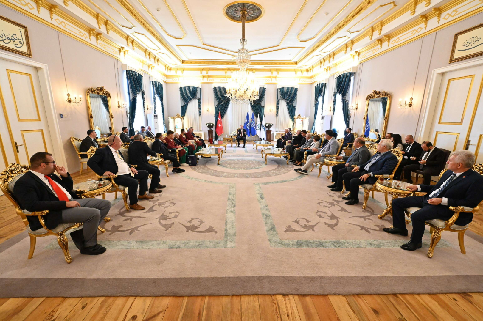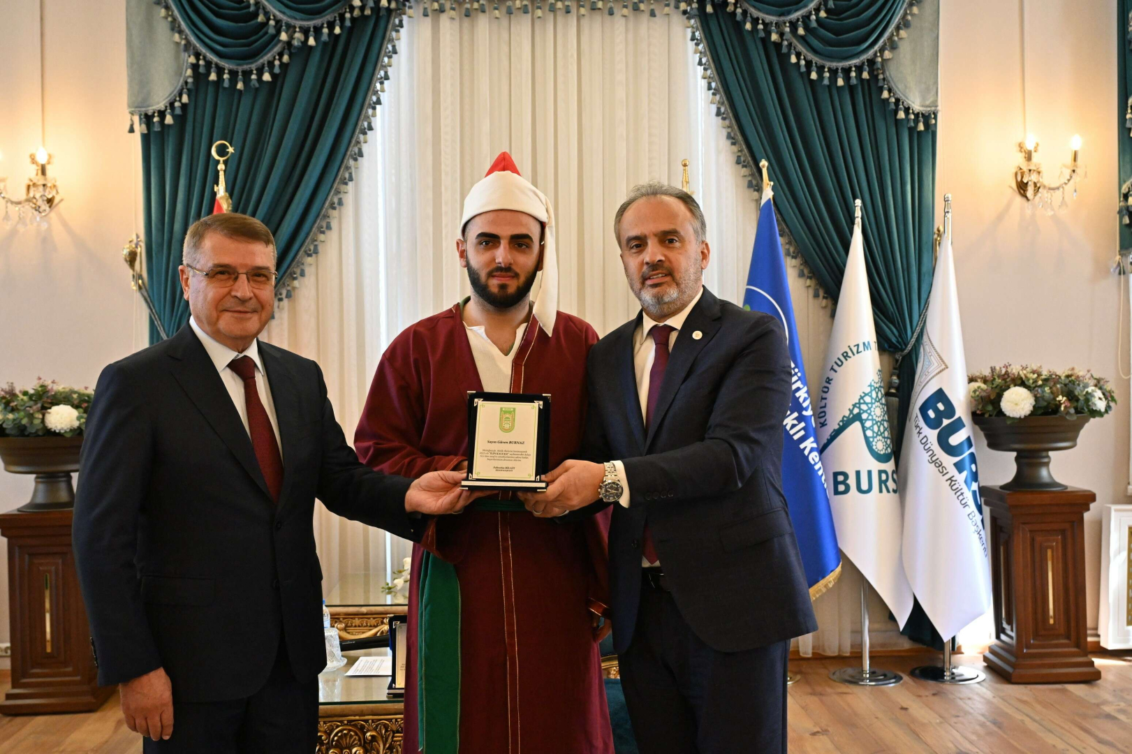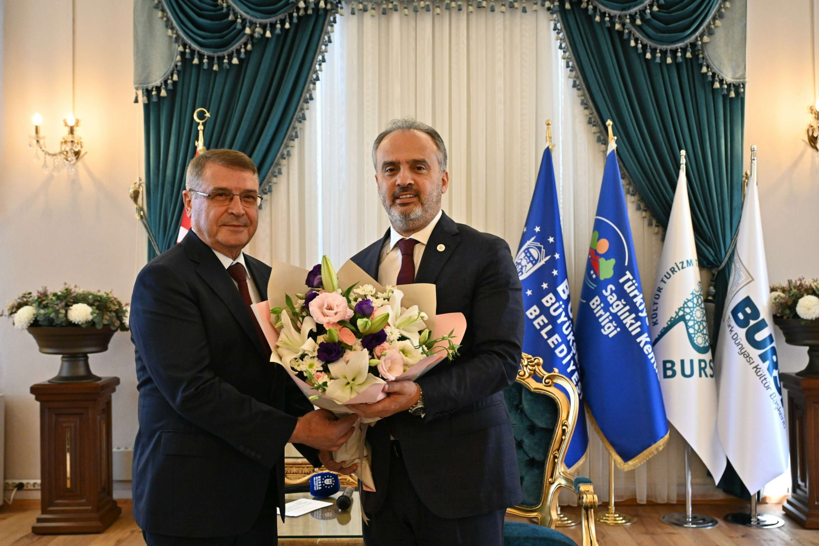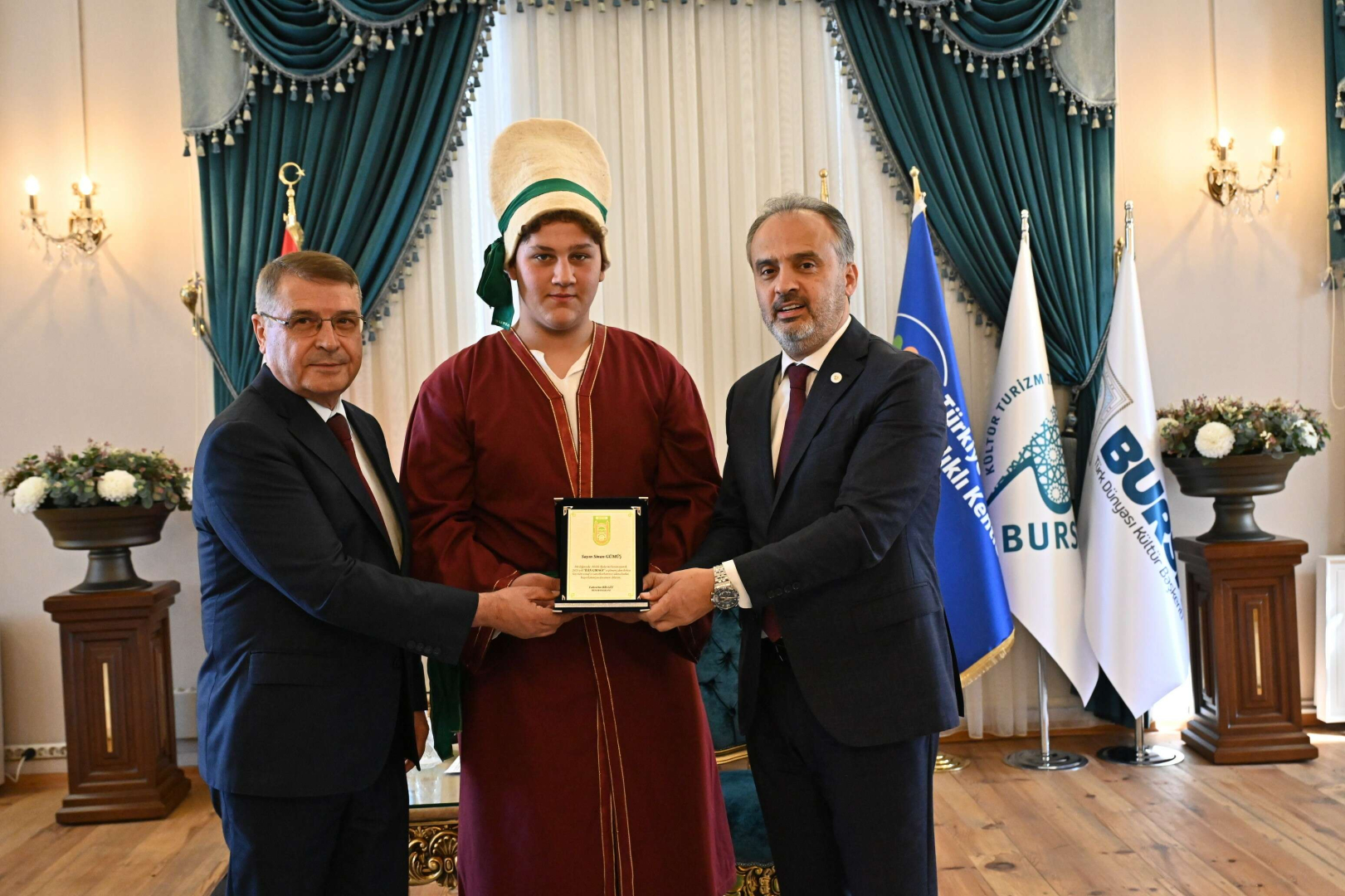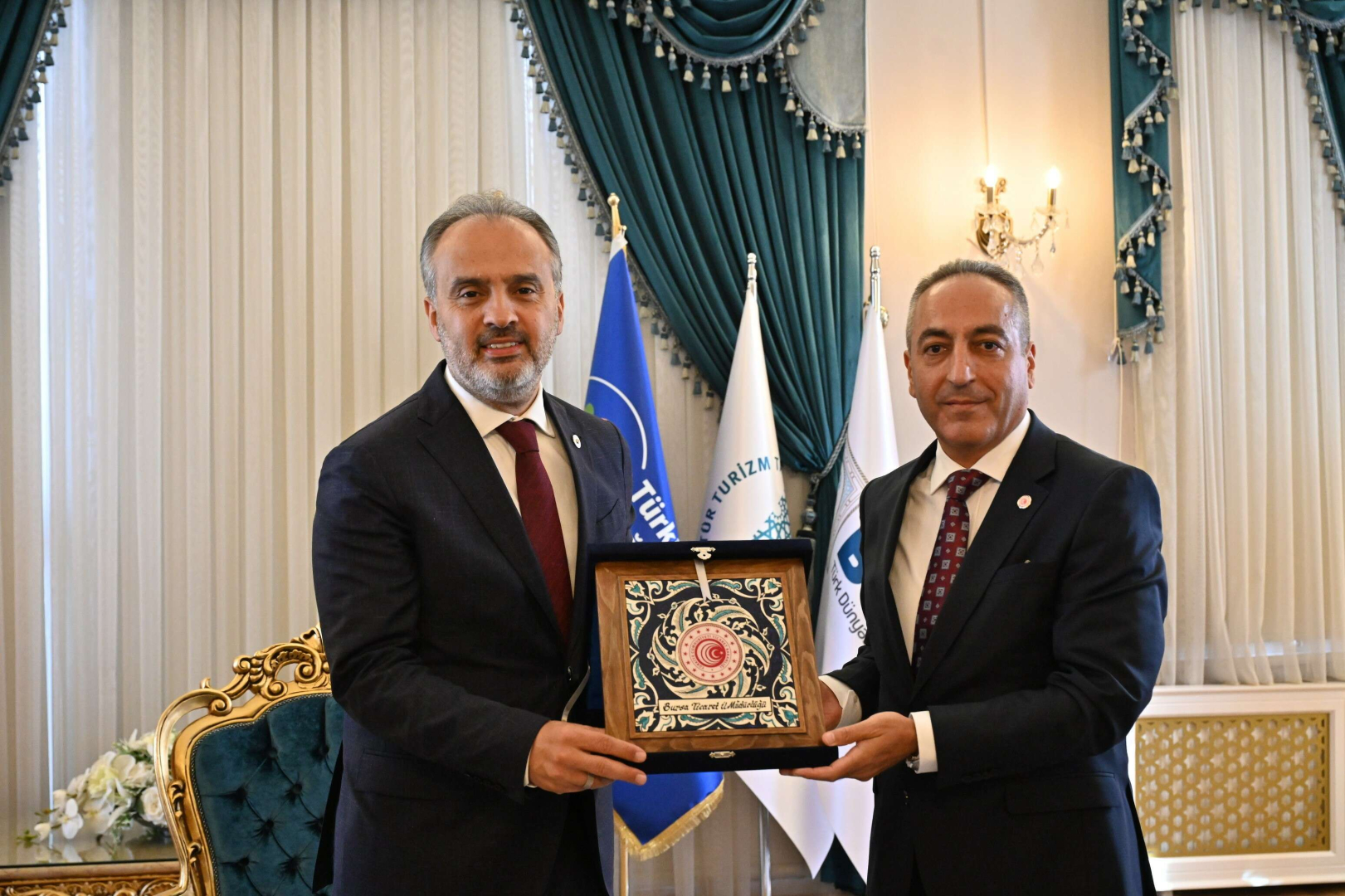 Her yıl kutlanan ve geleneksel hale gelen Ahilik Kültürü Haftası etkinlikleri çerçevesinde Bursa Ticaret İl Müdürü İsmail Aslanlar ve BESOB Başkanı Fahrettin Bilgit, beraberindeki esnaflarla birlikte Bursa Büyükşehir Belediye Başkanı Alinur Aktaş’ı tarihi belediye binasında ziyaret etti.