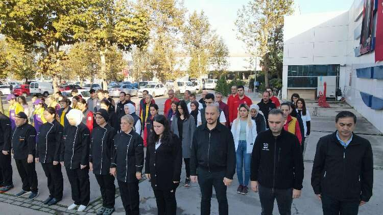 Sirenler eşliğinde saygı duruşunda bulunan çalışanlar, daha sonra İstiklal Marşı’nı okudu. Tören duygusal anlara da sahne oldu. Bazı çalışanlar tören sırasında gözyaşlarına hakim olamadı.