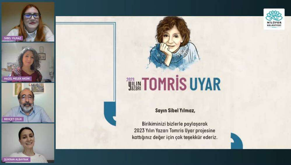 Nilüfer Belediyesi ‘2023 Yılın Yazarı Tomris Uyar’ etkinliklerinde düzenlenen söyleşilerin ilki çevrimiçi olarak gerçekleşti. Öğretmen ve öğretmen adaylarına yönelik planlanan ‘Biçim, dil ve değerde yenilik:Tomris Uyar Öykücülüğü’ başlıklı söyleşilerin konuğu akademisyen ve yazar Sibel Yılmaz ile akademisyen, yazar, çevirmen Hazel Melek Akdik oldu. Moderatörlüğünü Yılın Yazarı Danışmanı Behçet Çelik’in yaptığı etkinlikte öğretmen ve öğretmen adaylarına Tomris Uyar’ın öyküleriyle öğrenciler arasında güçlü bağlar kurmalarına yardımcı olacak yöntem ve uygulama örnekleri aktarıldı. Etkinlikte ayrıca Tomris Uyar’ın öykülerinin edebiyattaki yeri, öykü türüne katkıları, biçimde ve dilde gözettiği yenilikçi yaklaşımı bireysel hayatlar arasındaki bağın izleri de ele alındı.