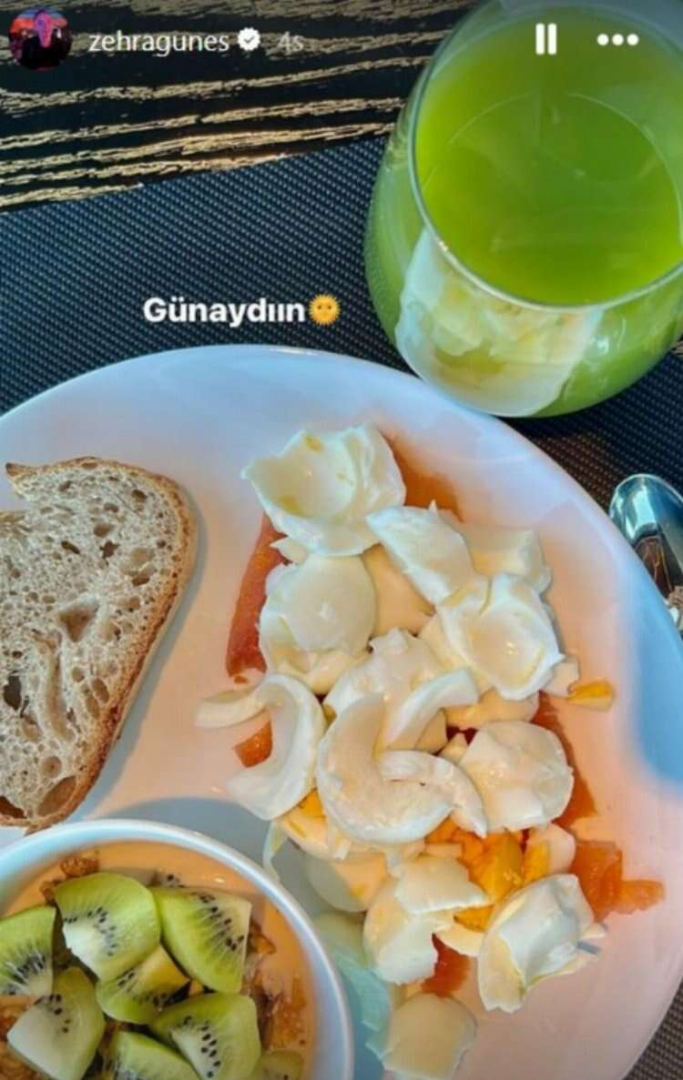 Zehra Güneş bu defa 'günaydın' notunu düştüğü paylaşımıyla gündem oldu. Bir öğünü paylaşn Güneş'in tabağındakiler ve içeceği dikkat çekti.