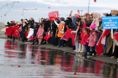 Yapılan konuşmaların ardında şehitlikte dua okuyan katılımcılar, ardından Van Gölü sahiline giderek göle karanfil bıraktı.