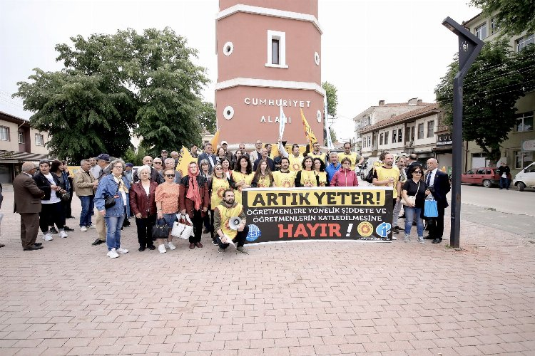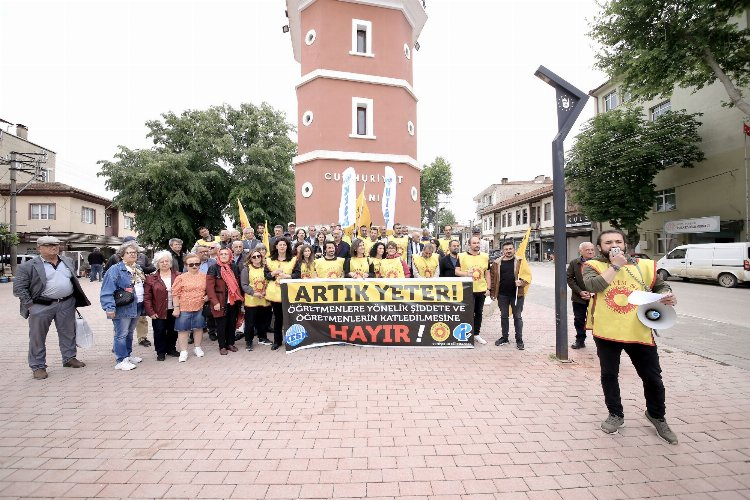 Basın açıklamasına katılanların 1 dakikalık alkış ve düdüklü protestolarının ardından konuşan Eğitim Sen Yenişehir Temsilcisi Şafak Ayhan, “Okulda şiddet bir meslektaşımızı daha aramızdan aldı. İstanbul'un Eyüp ilçesinde bulunan özel bir okulda müdür olarak görev yapan emekli öğretmen İbrahim Oktugan'ın bir öğrencisi tarafından öldürülmesi hepimizi derinden üzmüştür” diye konuştu.
