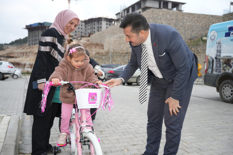 Başkan Özel, çocukların yüzünde oluşacak küçük bir tebessümün kendileri için dünyalara bedel olduğunu belirterek, Subaşı Mahallesi’nde Poyraz, Melek ve Nurperi’ye bisiklet hediye etmenin büyük bir mutluluk olduğunu ifade etti.