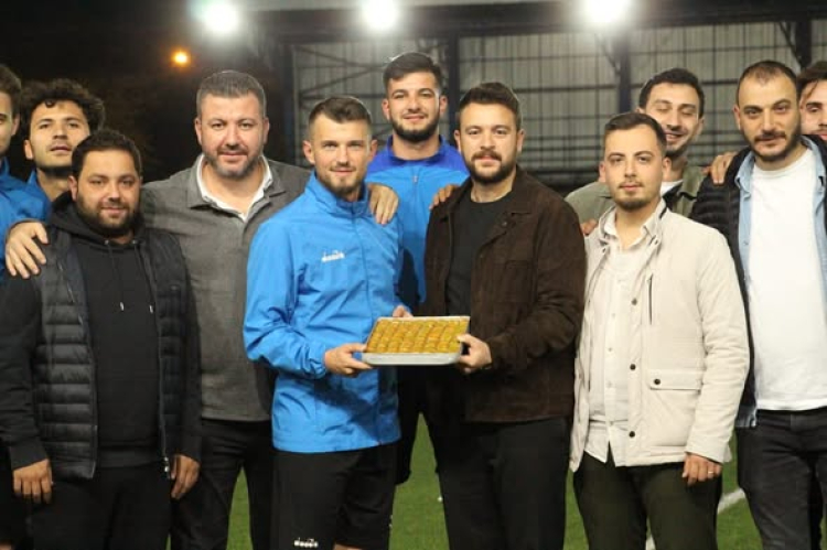 Ziyarette, Belediyesporlu futbolculara ve teknik ekibe tatlı ikramında bulunan kulüp yönetimi, takıma şampiyonluk yolunda başarı dileklerini iletti.