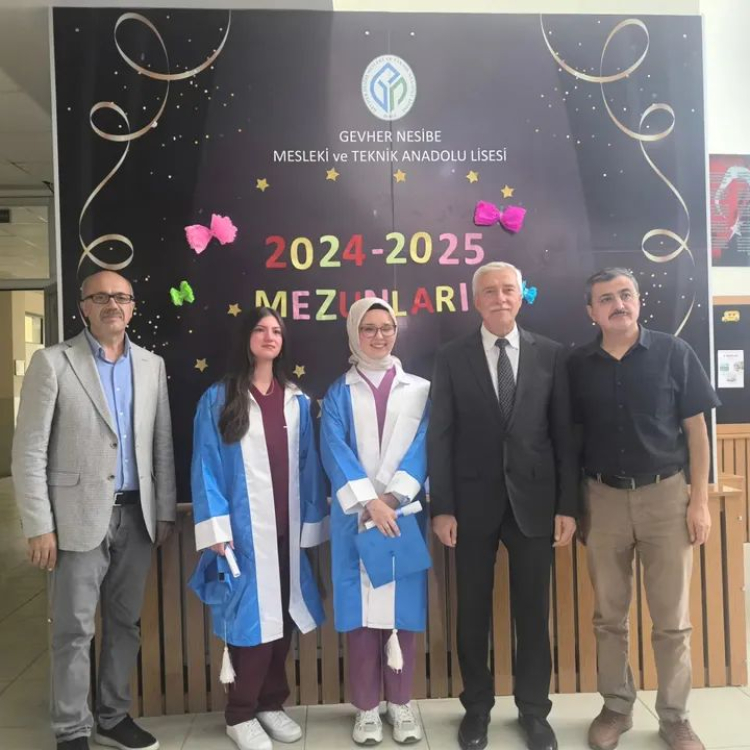 Yenişehir İlçe Milli Eğitim Müdürü Hüseyin Yaşar, Gevher Nesibe Mesleki ve Teknik Anadolu Lisesinde, talihsiz bir kaza geçirdiği için mezuniyet törenine katılamayan Buse Zeybek ve çeşitli sebeplerden dolayı törene katılamayan öğrenciler için düzenlenen 2024-2025 Eğitim Öğretim Yılı Mezuniyet Özel Programına katıldı.