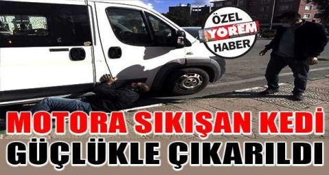 MOTORA SIKIŞAN KEDİ GÜÇLÜKLE ÇIKARILDI