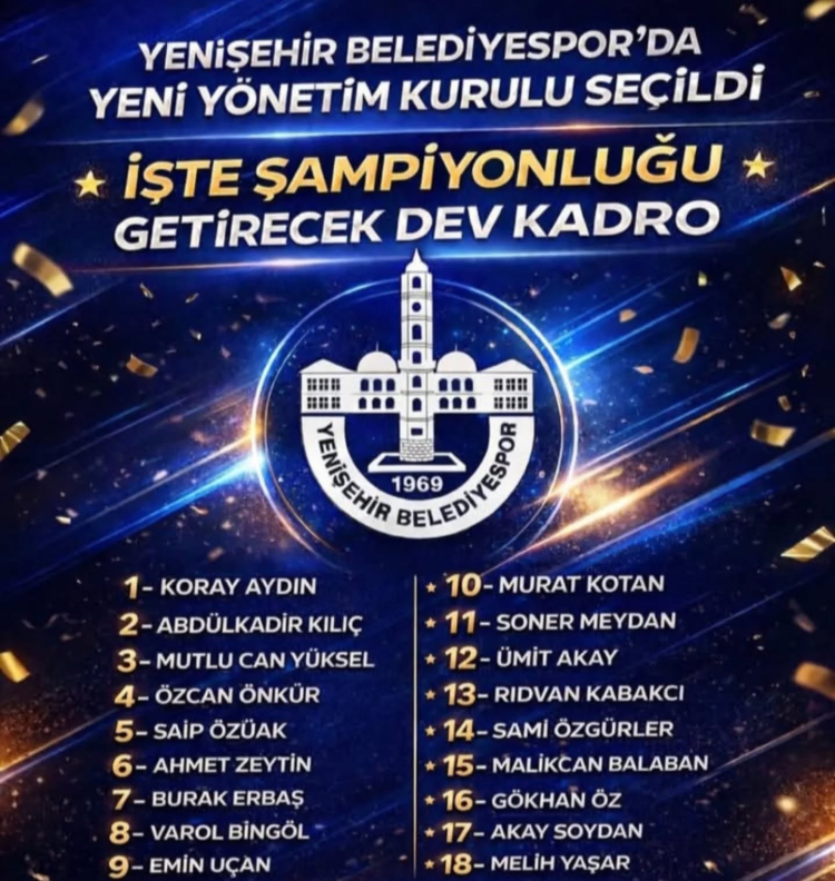 Konuyla ilgili açıklama yapan Yenişehir Belediyespor başkanı Koray Aydın, "Öncelikle kulübümüz kurulduğu günden itibaren büyük emek ve hizmetler harcayan geçmiş dönem başkanlarımıza yöneticilerimize belediye başkanlarımıza şahsım ve kulübüm adına teşekkür ediyorum. Futbolda ve voleybolda başarılı grafiğimiz devam ediyor. Yaptığımız genel kurulumuzda yeni yönetim kurulumuzu belirledik. Hepsi birbirinden değerli hepsi Yenişehir aşığı bir ekip ile başarı grafiğini daha ileriye taşımak taraftarlarımızı mutlu etmek için çalışmalarımız dün olduğu gibi bugün de artarak devam edecektir" diye konuştu.