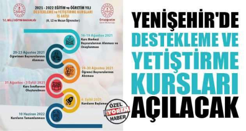 Açıklamada şunlar kaydedildi: "Hayallerinize ulaşmanın en kolay yolu Yenişehir Halk Eğitim Merkezi'nde Yenişehir Belediyesi'nin destek ve katkılarıyla açılan DYK kurslarından geçiyor. Deneyimli öğretmen kadrosuyla her hafta yapılan deneme sınavlarıyla siz mezun öğrencilerimizi kurslarımıza bekliyoruz. Kurs için kayıtlarımız 16-30 Ağustos tarihleri arasında yapılacaktır. Kontenjan sınırlıdır."