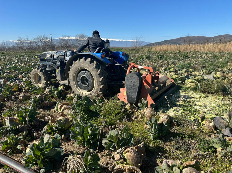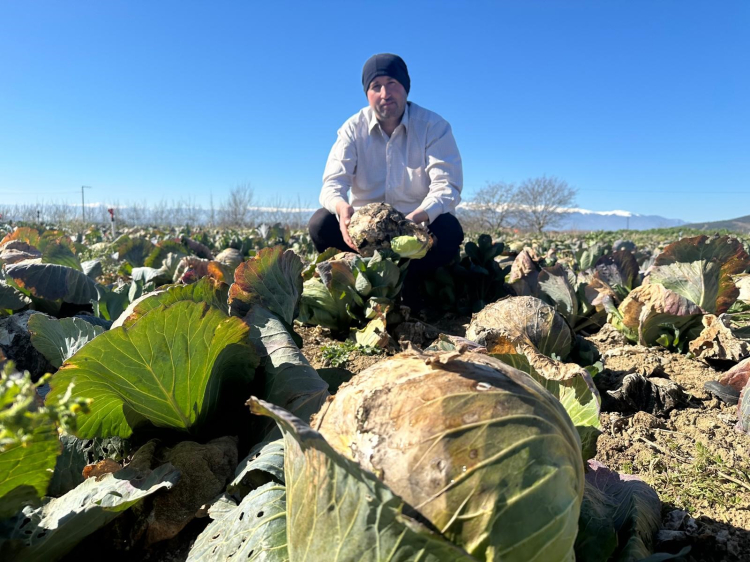 Yeni üretim sezonu geldiğini ve tarlasını değerlendirmek istediğini belirten Akkuş, "Bunun yerine başka ürün ekip zararı kurtarmak istiyorum. Traktörümle birazdan lahanayı parçalayacağım ve tarlayı süreceğim. Şu anda 25 bin lahana yatıyor tarlada. Tarlaya gübre olacak bu lahanalar. Tüm emeklerimiz paramız toprağa karışacak" dedi.
